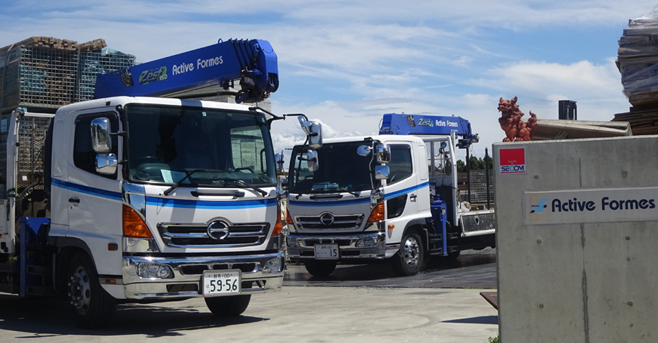 アクティブフォームスは、作業効率を上げいかに無駄を省くことができるか型枠・運搬・土木・工場が一致団結し、さらなる生産性向上を目指しています。現代の型枠工事の用途や現場状況等に応じた多彩な型枠技術に対応できるよう設備投資には労を惜しまず、元請からの要望に全力で対応しています。